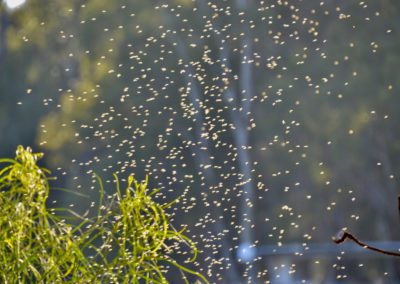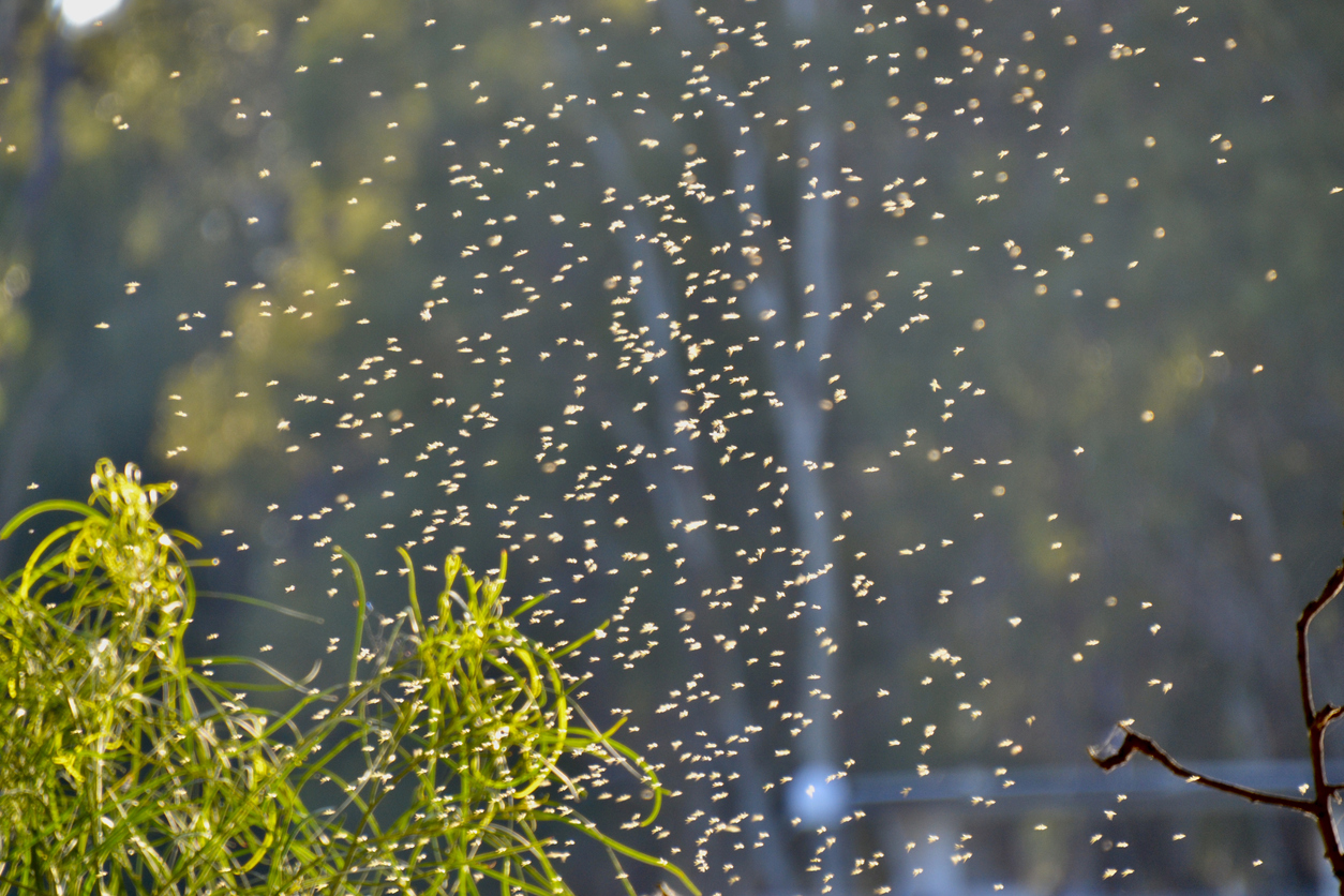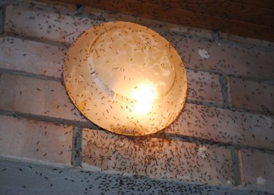 Midges often swarm with gloomy, wet weather triggers. Springtime is a very common time to see swarms. They’ll congregate around windows, often attracted to light. One thing homeowners can try is replace any outdoor lighting with LED bulbs. These may be less attractive to these flying insects.